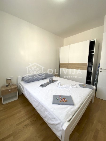 Площадь квартиры составляет 60 м², из окон и с террасы открывается вид на море.