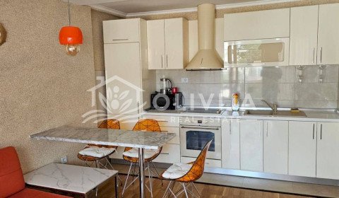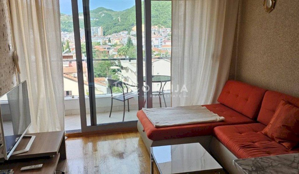 Общая площадь квартиры составляет 44 м², из окон и с террасы открывается вид на горы.